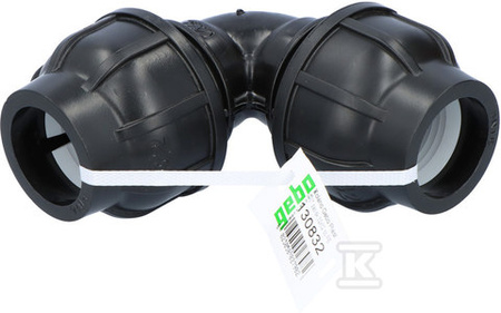- Kolano zaciskowe PP 90st. 32x32 PN16, do rur PE, kolor czarny